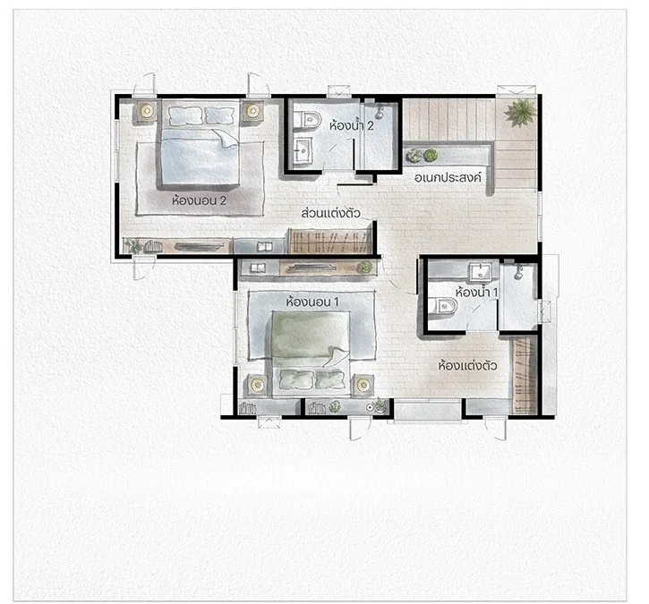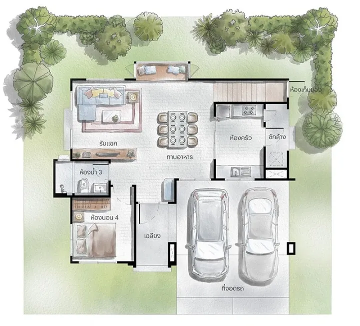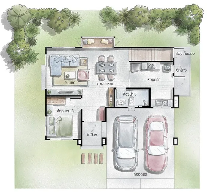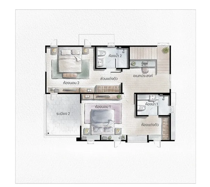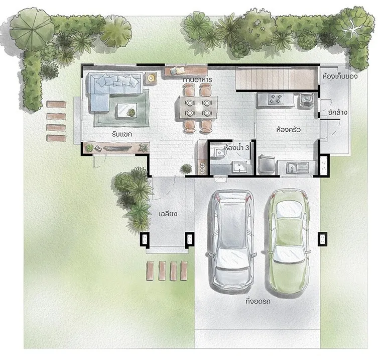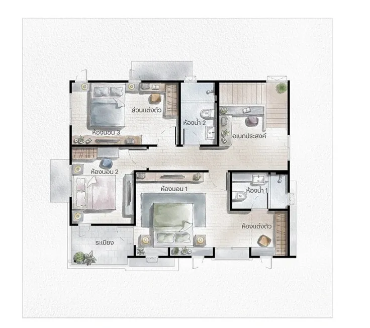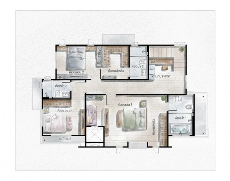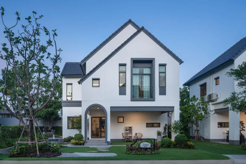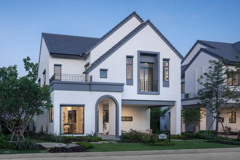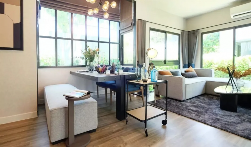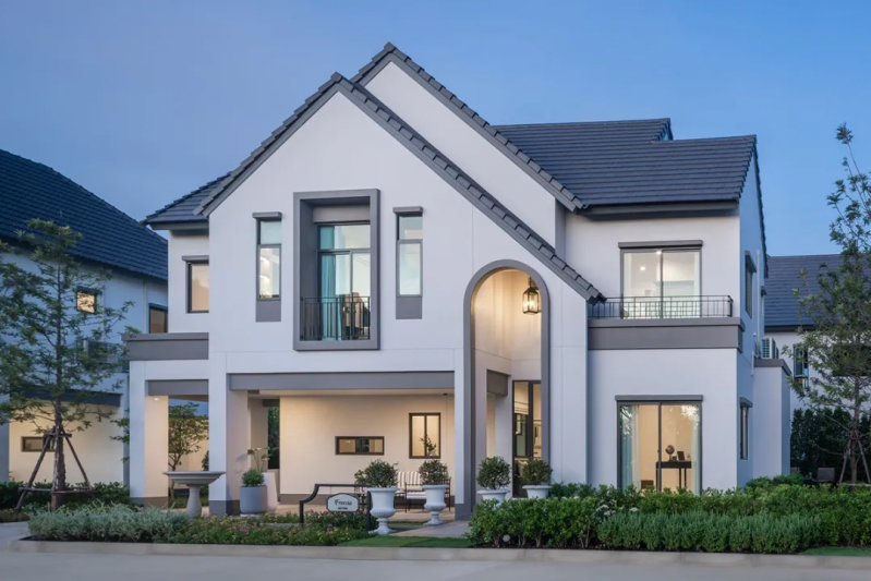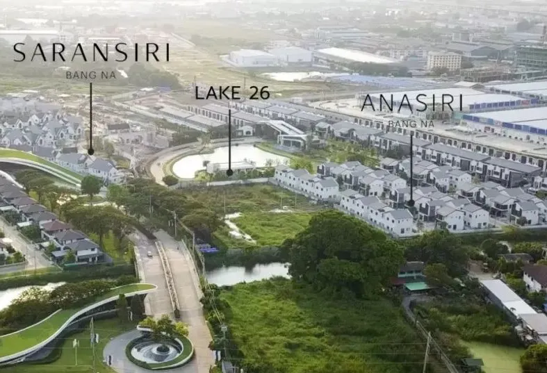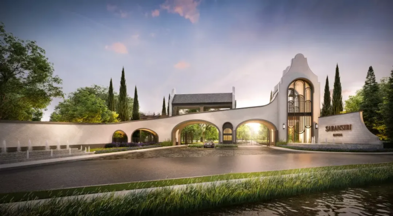 Saransiri Bangna是一个 2 层独立式住宅项目,占地 6 莱,拥有 246 个单位,前面有一个公共区域,例如露天湖 26 湖。与以Samrong运河为背景的项目区域保持一致。在设计上,它借鉴了开普敦荷兰建筑的亮点,如瓦片屋顶和圆形山墙。长玻璃窗和白色的墙面材料这可以从该项目的房屋模型中看出。