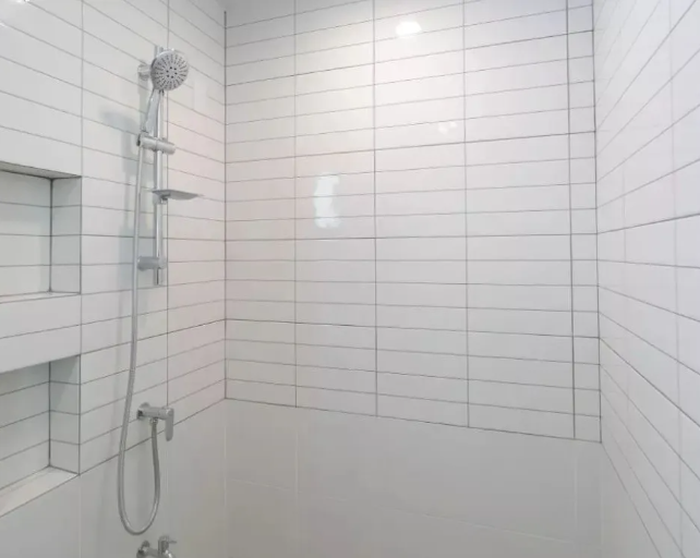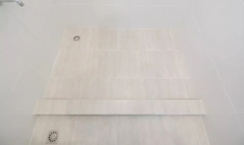 淋浴面积为1.27×0.80 m,边缘凸起,防止水流到外面。