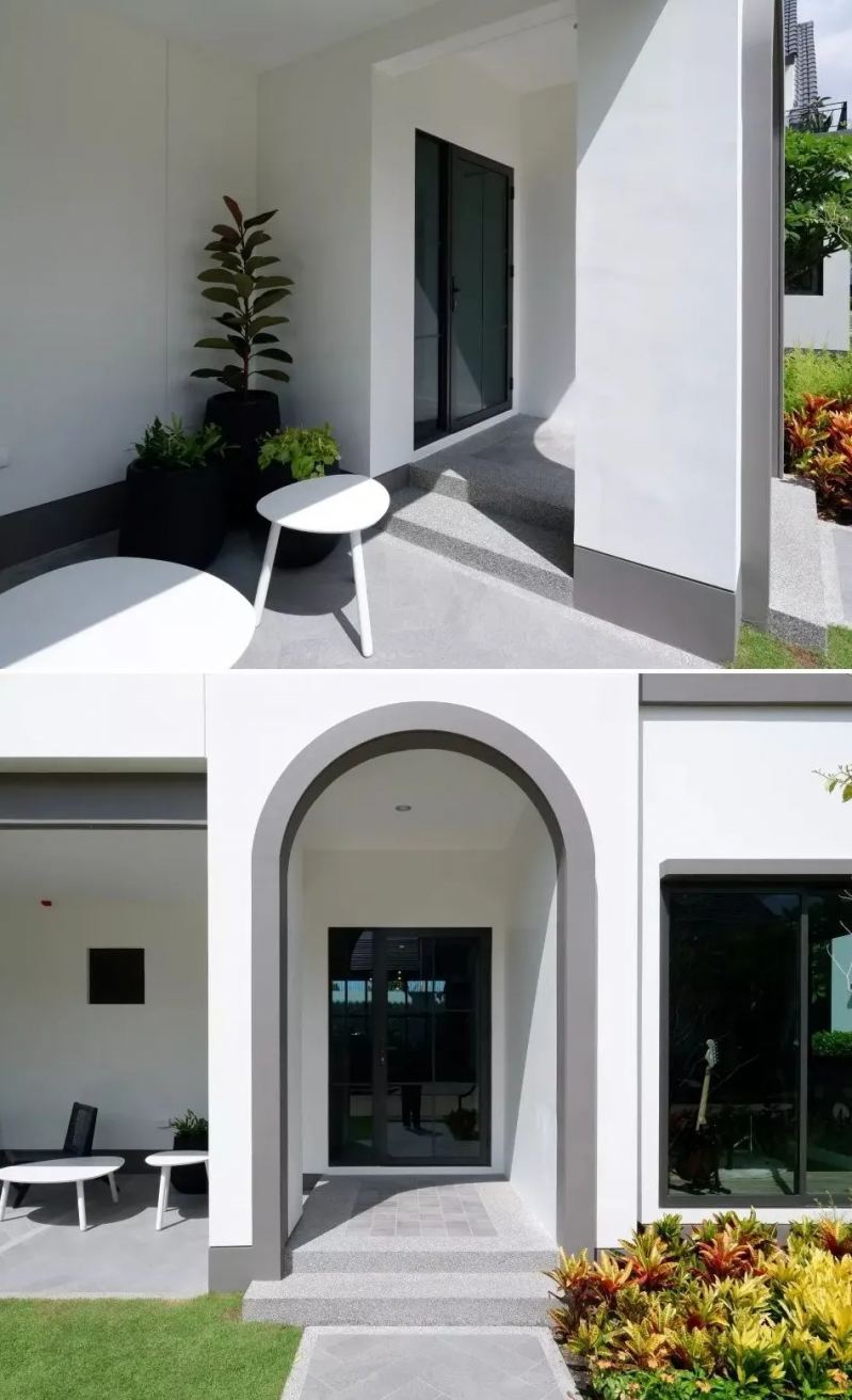 在房子的入口处露台地板从正面和侧面均升高。为了两边都能走进去,房子的亮点仍然是弧形的拱门。