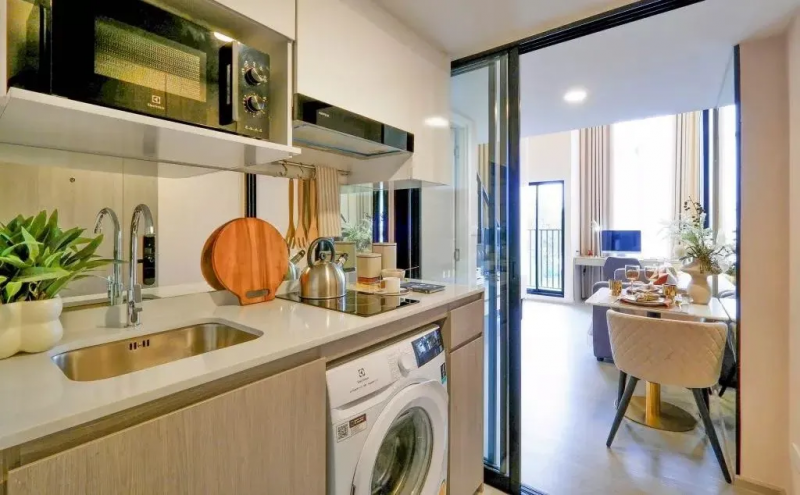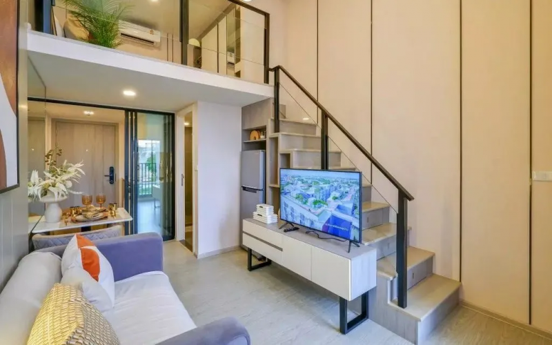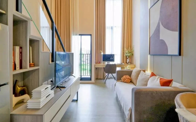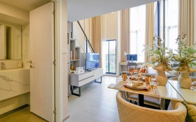 整个项目都配有高天花板的公寓...... !起价为 2.79 - 439 万泰铢,该位置毗邻 Ramkhamhaeng 路,靠近所3 条电动火车线路的交汇处。