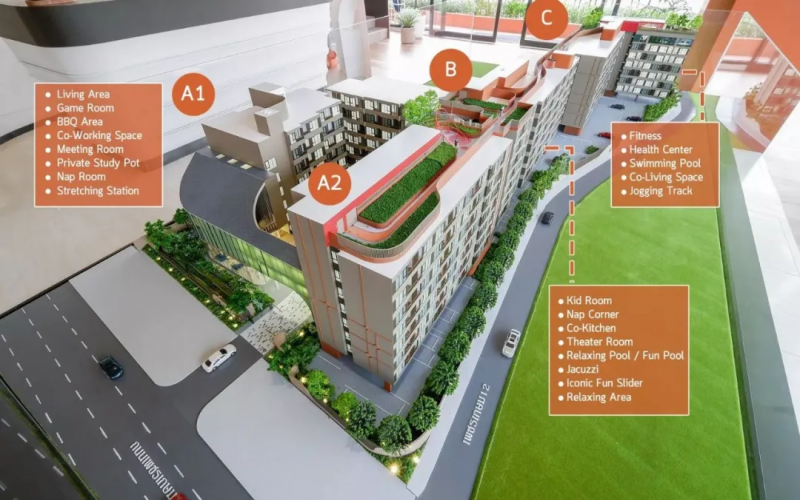 Kave Genesis Nakhon Pathom是一幢 8 层高的低层公寓,有 3 栋建筑,579 个单元,面积约 5 莱,毗邻 Phetkasem 路。该项目的亮点不仅在于靠近购物中心和大学的位置。该项目的设计也很有趣,包括“具有泰国风味的未来主义元素”的概念,其灵感来自泰国中央房屋的建筑和佛统府的独特环境。结合现代材料和建筑风格,满足不同居民的需求。