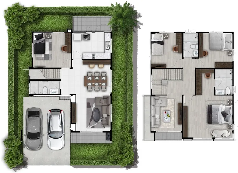 受自然启发的新风格房屋以绿色理念设计项目,使用优质节能材料。与同等价格的房屋相比,更优质的材料。满足大家庭的需求,设有 3-4 间卧室、3 间浴室、多功能室、上层客厅*和 2 辆车的停车场。