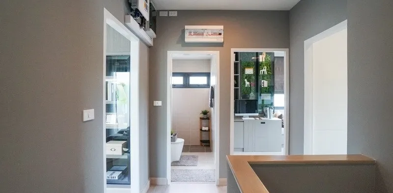 使用带有 SCG 通风百叶窗的乙烯基天花板。门窗采用灰色 UPVC 框架,有助于减少热量并阻挡紫外线。灭蚁管道系统和液体压缩机。也已正确安装到地下。房子周围环绕着绿地。
